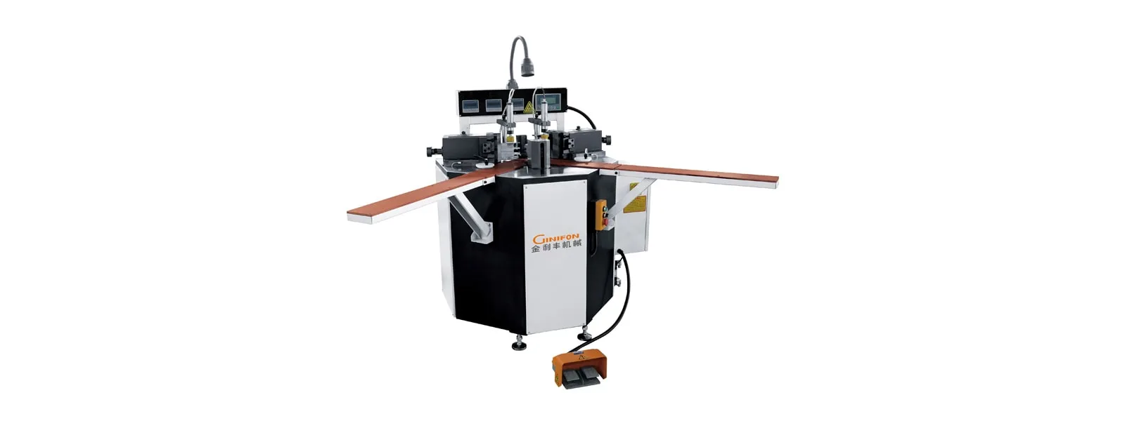 This machine uses hydraulic power to squeeze the profiles pocket through the corner assembly fork and buckle in the built-in corner connectors and to make the jointing firm and beautiful.