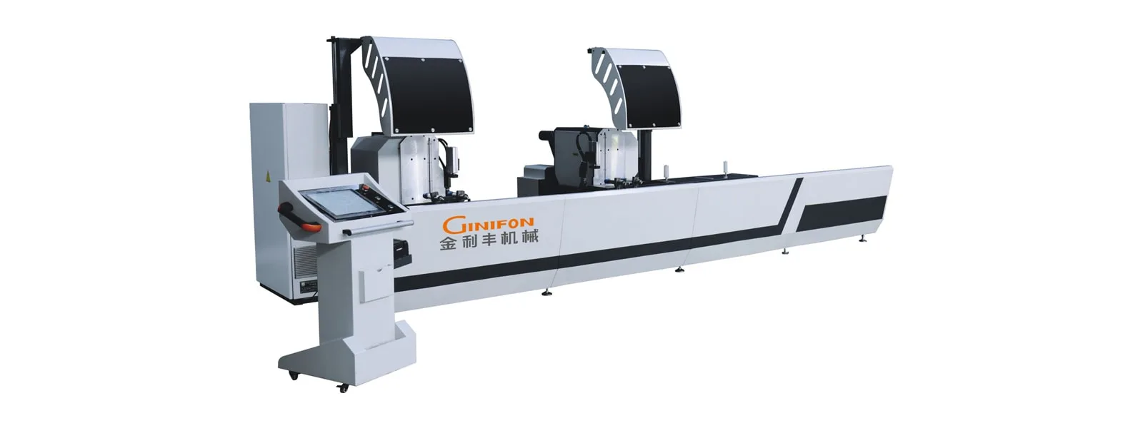 Fully automatic CNC double head saw with arbitrary angle, suitable for cutting various aluminum profiles in angle and length. This machine uses a 3KW motor to directly install the saw blade, and imported linear guide rail transmission to ensure small vibration during cutting and smooth sawing surface. The imported damping cylinder is used for feeding, which ensures stable feeding and fast retraction speed. The angle control of this machine uses an imported absolute value motor to ensure the accuracy of swing angle positioning. The length positioning uses an imported servo control system in conjunction with an imported reducer, which is fast and accurate in positioning. It has an automatic feeding function and comes with a cutting optimization interface.